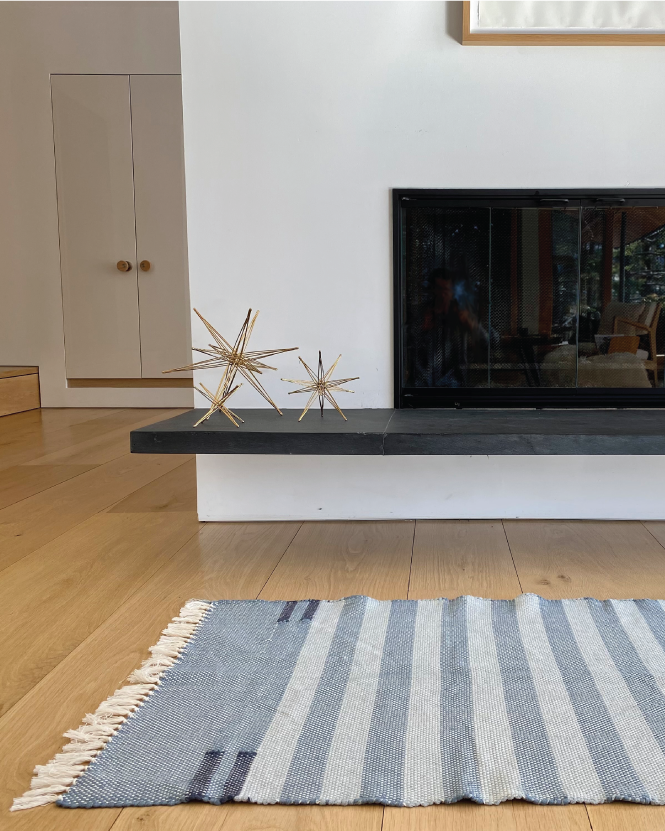Handwoven rug. Made of upcycled denim. Produced in Guatemala.